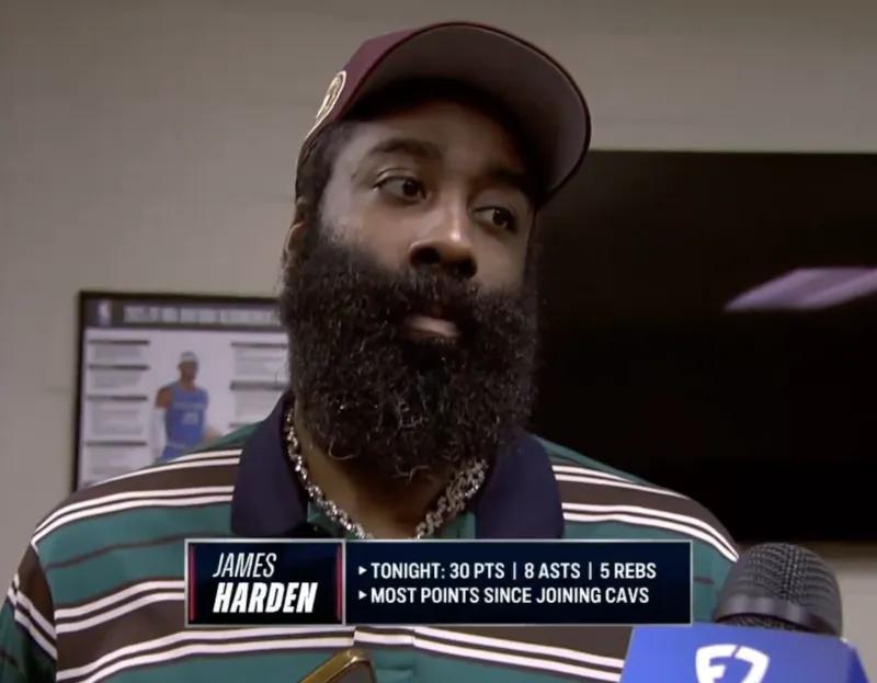 哈登表现出色,16投11中,三分9中5,高效拿到30分6篮板8助攻,尤其末节贡献7分,该站出来时毫不手软,几乎挑不出太大毛病。值得一提的是,这场30分5板8助的表现,也让哈登成为骑士队史上年龄最大的单场达成这一数据的球员,又添一项历史纪录。替补席上只有埃利斯发挥稳定,贡献20分3板1助,其他人包括泰森和韦德都拉胯,整体低迷。赛后骑士随队记者Danny 直言,除了哈登和埃利斯,其他球员包括米切尔在内,几乎没什么值得称赞的地方,防守端集体拉胯。哈登赛后也说了防守问题,不在进攻端。